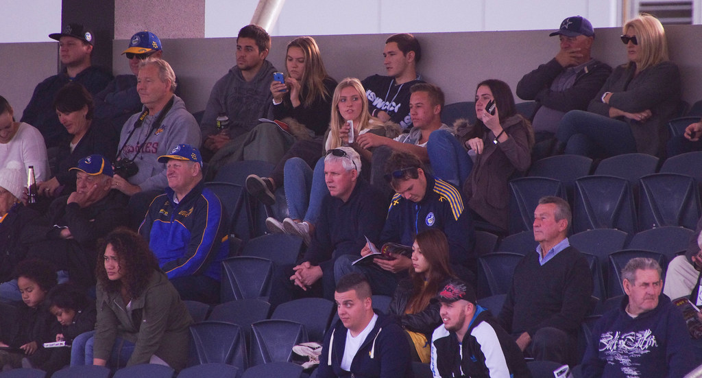 Hi Kyle, I like the image you picked for this one. From the original you can see the crowd kind of disengaged, some looking around not focused on the game. The person you chose to highlight reading a magazine during the game perfectly demonstrates his lack of interest in the action taking place. With the crop I thought you picked a good person to include with the disinterested magazine reader. The gentlemen to the left has a bit of a bewildered look as he gazes toward the game. One other option could have been to crop the image and focus on the girl in the top row, more focused on her phone than the game! Only improvement or edit I could suggest is crop the man from the far right of the image, leave the two you picked plus the girl sitting a row in from of them. Overall, great job!