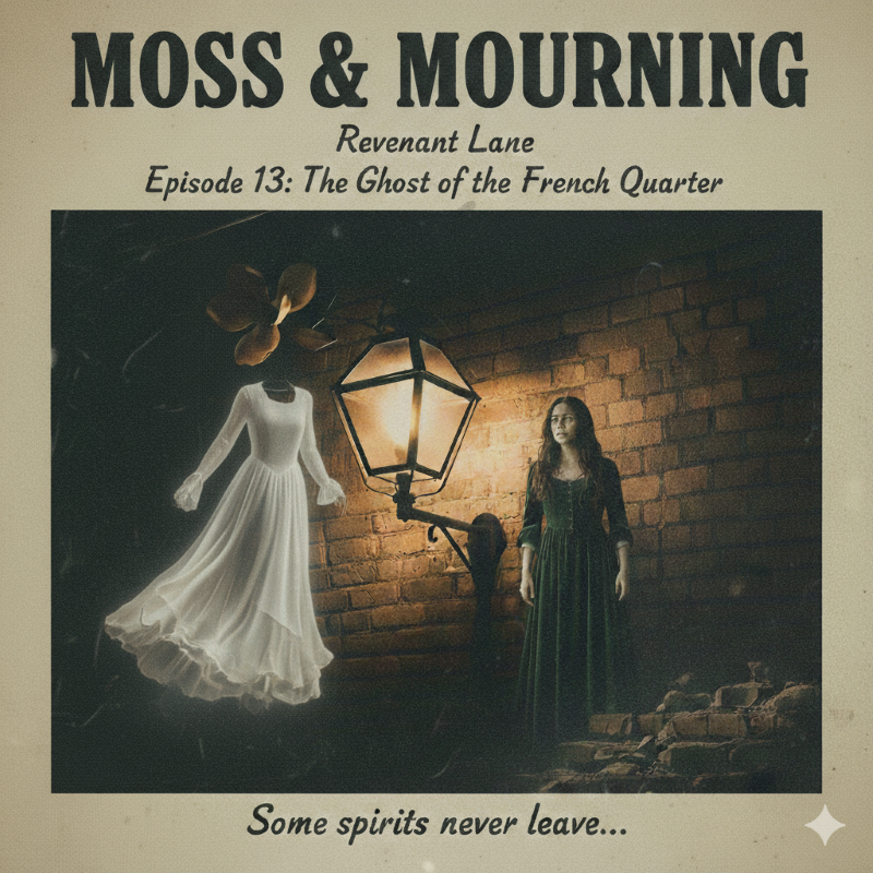 Moss & Mourning is a podcast about southern paranormal experiences. Episodes for this podcast covers encounters by paranormal patrons who have visited some of the most haunted cities in the southern part of the United States. Episode 13, is about my mother-in-law’s experience when she was thirteen years old and lived with her parents in an older New Orleans neighborhood. The episode begins with the sound of a record needle hitting vinyl, paralleling a low-fi, bass-heavy jazz turn which begins to play, but it sounds slightly slowed down, giving it an unsettling, “melted” quality. Then a faint sound of a summer thunderstorm in the distance can be heard as well. Toward the end of the voiceover, the music stops abruptly and the sound of soft rustling, like a silk dress sliding across a wooden floor can be heard, but grows slowly louder, more aggressively. My narration was recorded using my computer microphone, noise cancelling headphones, and compiled as well as edited using Audacity.