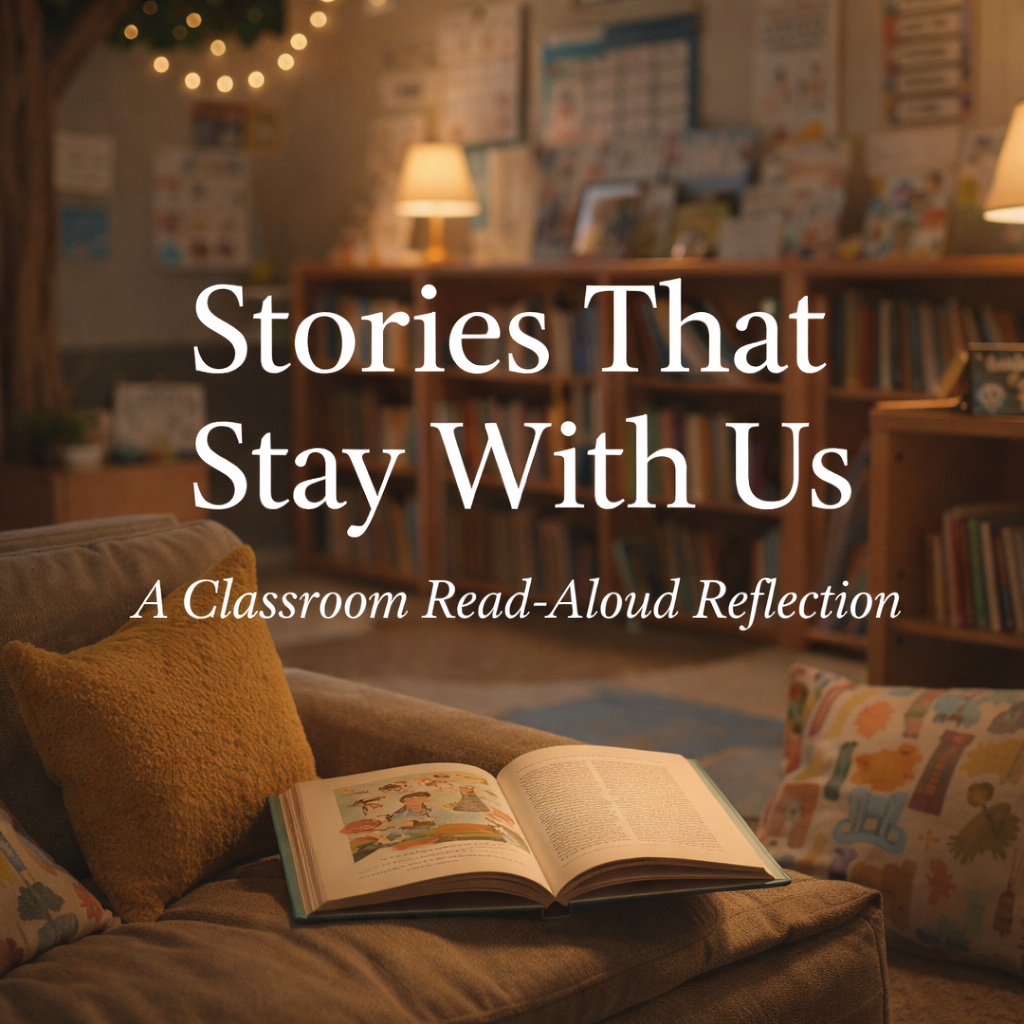 AI image generated using the prompt: “cozy classroom reading space with warm lighting and an open book, calm storytelling atmosphere” by DALL·E (OpenAI) February 2026.