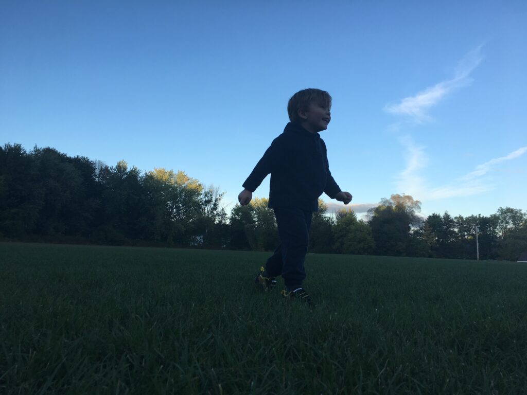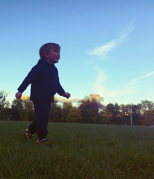 I took this photo (top photo) of my son a decade ago! He was running in a big field attached to the local playground we used to go to when we were in Maine. We would go after dinner to get as much energy out as we could before bed, because at three, there was a lot of extra energy! He was chasing my cousin and had no time to stop for a picture; which was just fine with me because I love a good candid any day. In the photo I took, he was in full motion and he is almost dead center, and because the sun was setting, there was a pretty good shadow on him. I used the rule of thirds to crop, (bottom photo) keeping in mind that he had to have somewhere to run to, so I put him in the upper left so he remains in motion and we still get the point of view that I really wanted. I also added a retro filter to stylize it, which I think enhances the sunset colors dramatically without looking artificial.