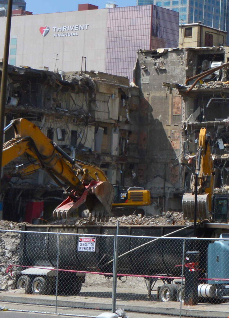 The photo that I selected for this assignment is one of a construction site taken 10 years ago in Minneapolis. The original photo tells a very different story, one of tearing down an old building to make way for something new that is more fitting to its surrounding structures. What was here is out of place with the implied trajectory of a city on its way up. I cropped it the way that I did to rid the photo of the prospect of interpreting it as one telling the story of promise and improvement. By eliminating the skyline of buildings that represent success, the viewer is only left with the juxtaposition of blight with the logo of a financial investment firm based on responsible planning for the future. Clearly this is one risk that didn’t work out according to plan. It calls into question the sense that this is a firm to be trusted with one’s future.