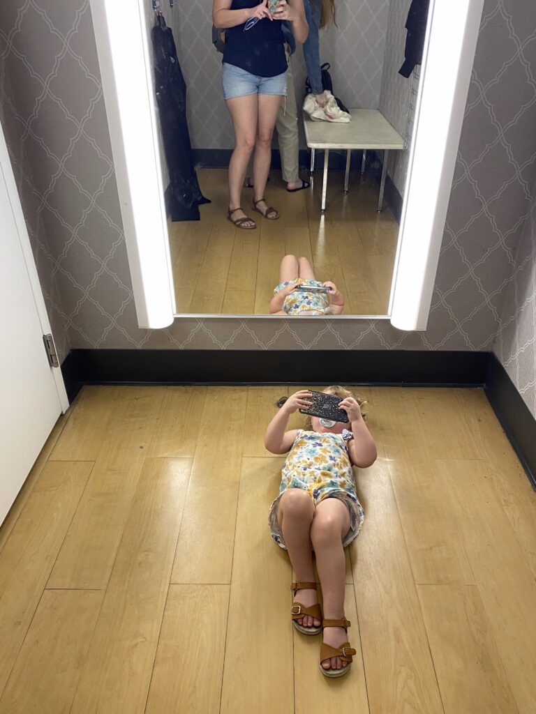 This photo was taken while shopping at Marshalls. My daughter was so locked in on what she was watching on my friend’s cell phone that she couldn’t be bothered to notice we were ready to leave. I have always liked the reflection from the mirror in this photo but felt my friend and I didn’t really need to be in photo since we are distracting from her focus. I removed us and made her more of the focal point of the photo.